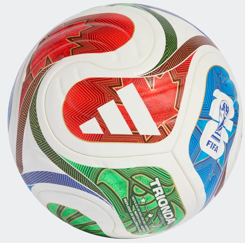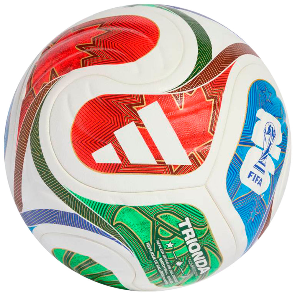 A spectacular sight first seen at sporting venues across the Americas, the iconic "la ola" wave inspires the flowing, four-panel design of this adidas Trionda Pro ball. The official soccer of the FIFA World Cup 26™, it has a seamless surface with an eye-catching texture and strategically placed debossing for optimal precision and in-flight stability. Vibrant colors and bold national symbols represent the tournament's three host countries.