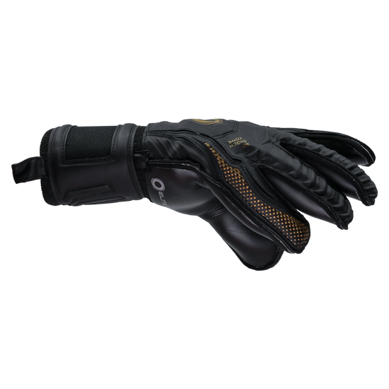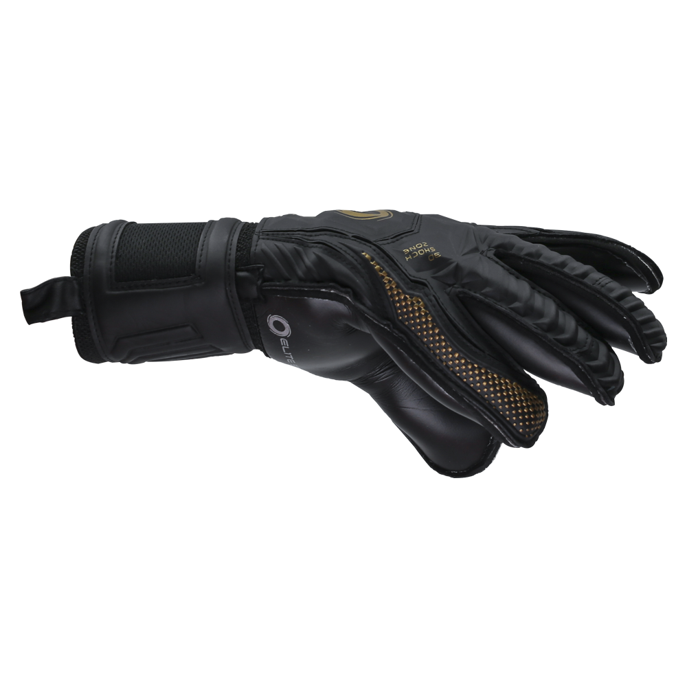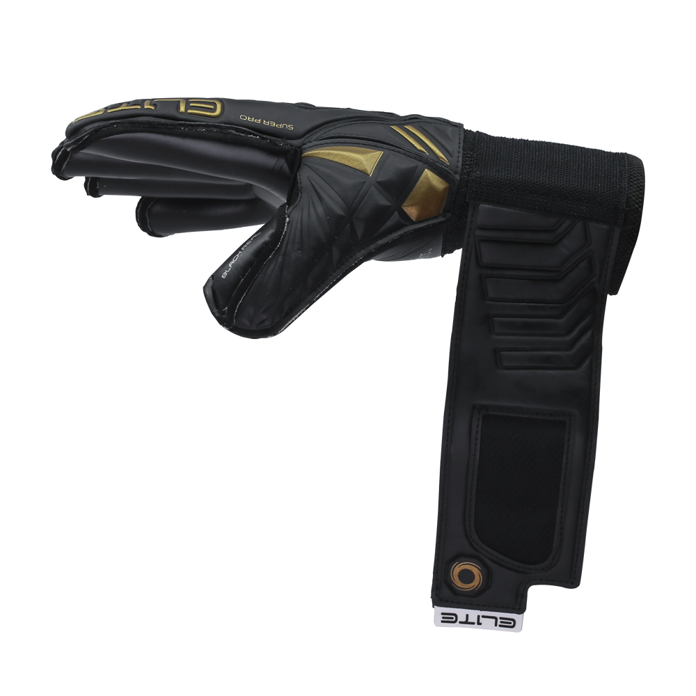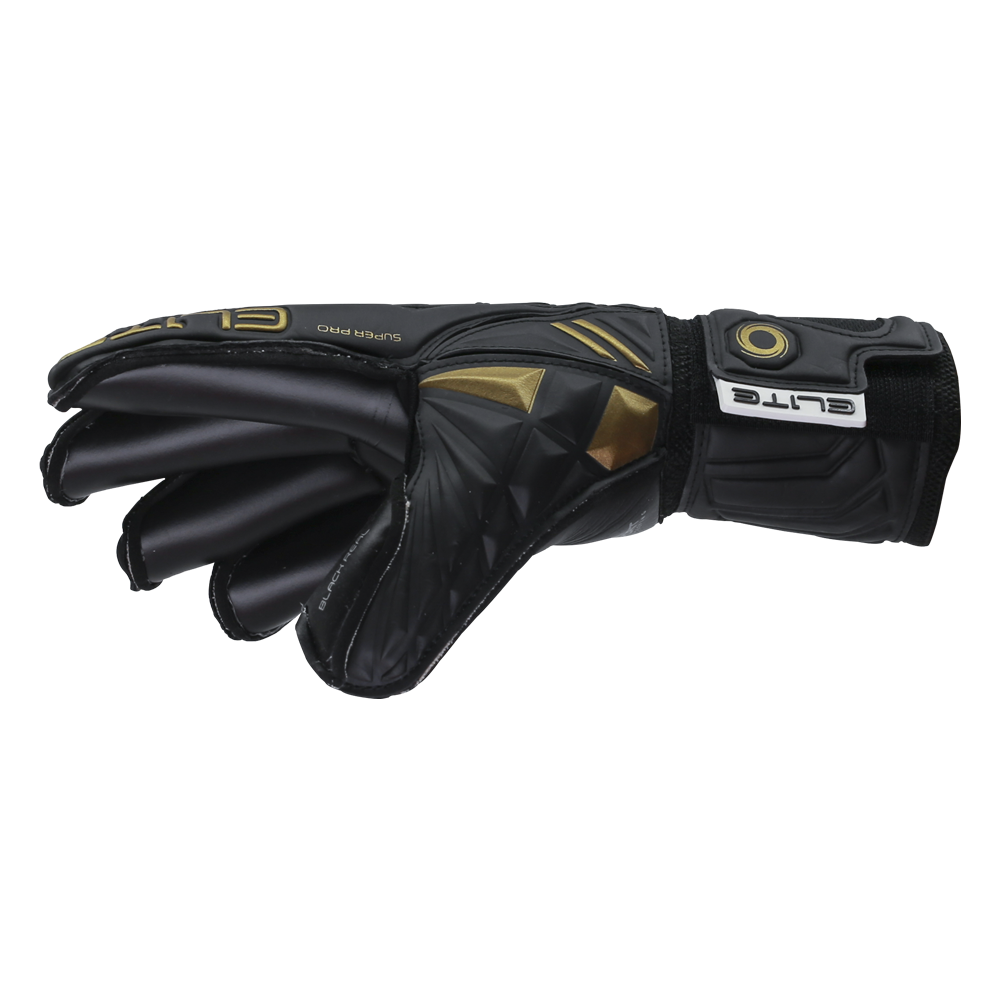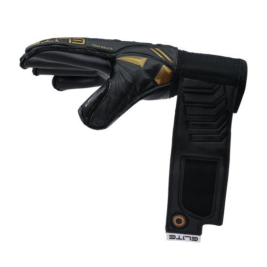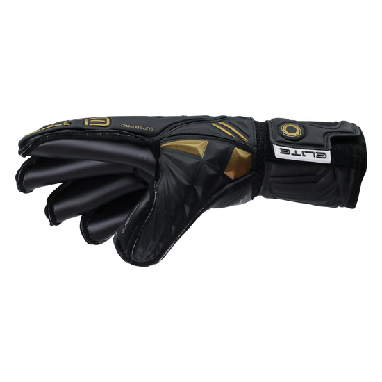 The Elite Sport Black Real is a game level glove with Elite Sport's best grip and removable finger spines. The roll finger cut offers more latex to ball contact, which means you catch and hold more shots. Elite have updated the black and gold backhand design to complete the look. Great game glove for high school and college goalkeepers.