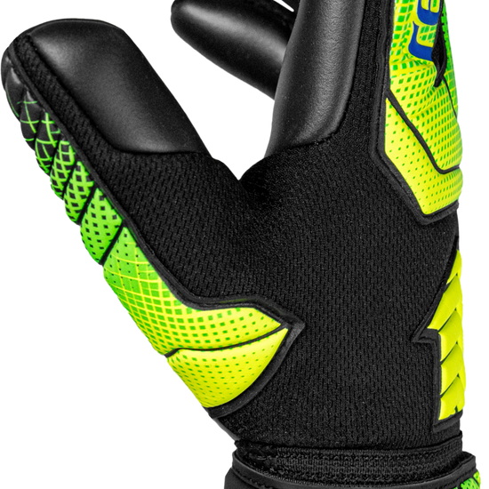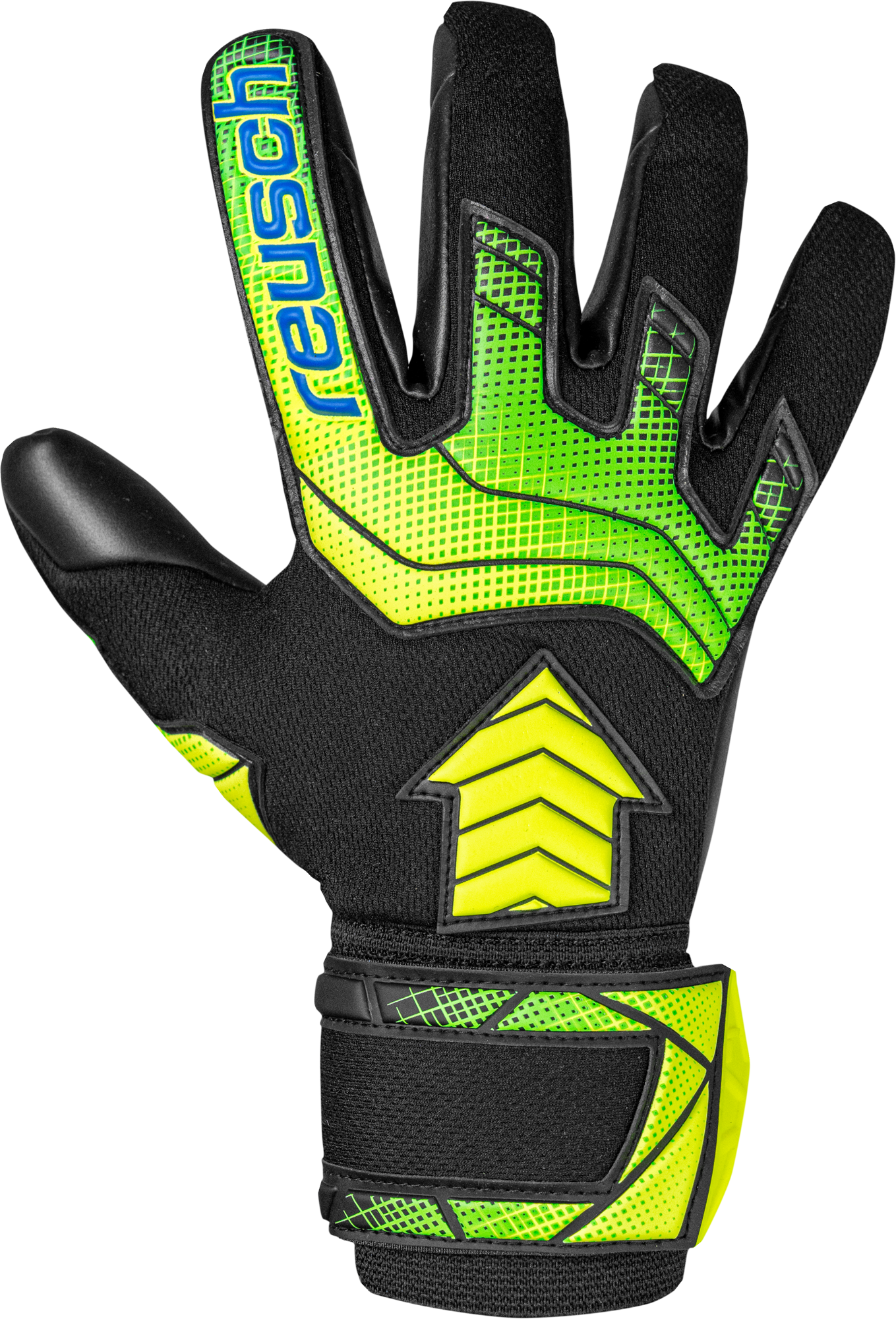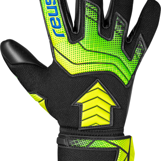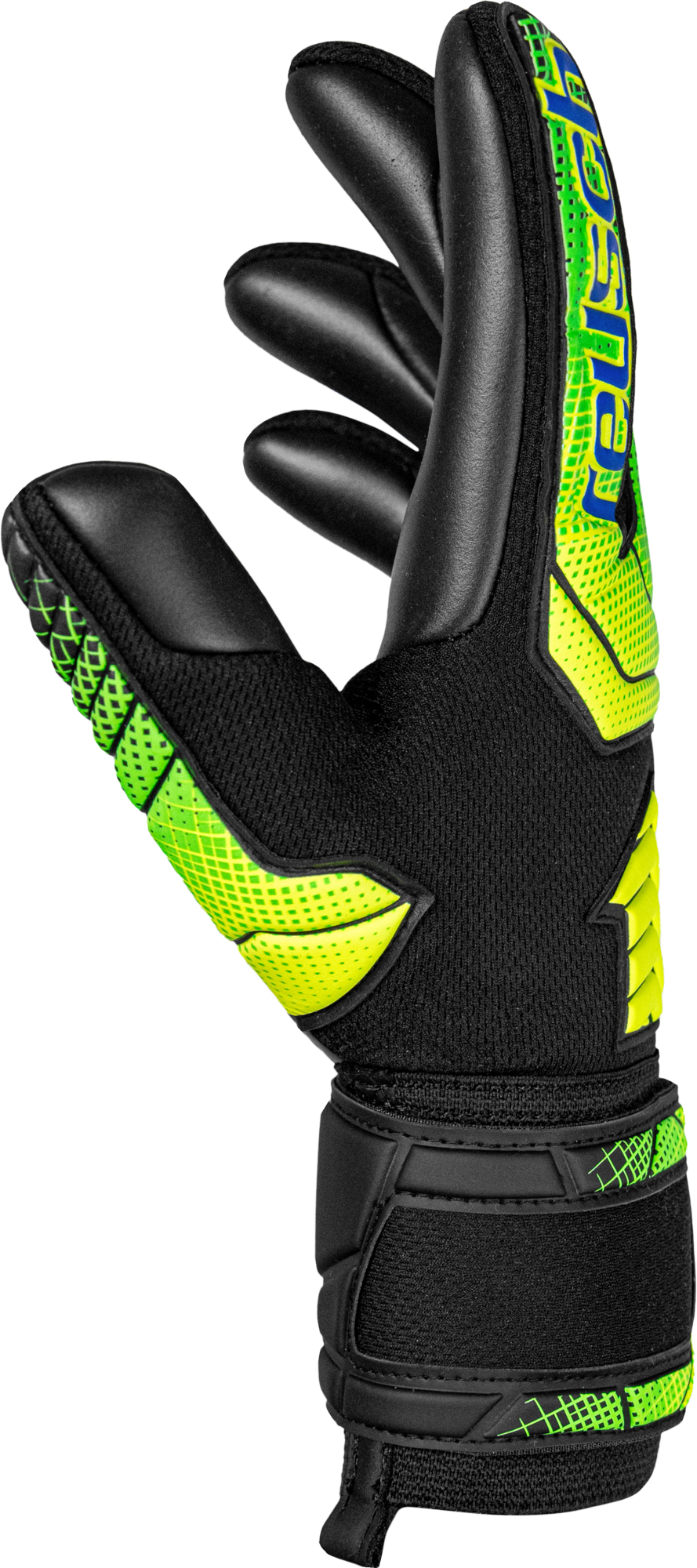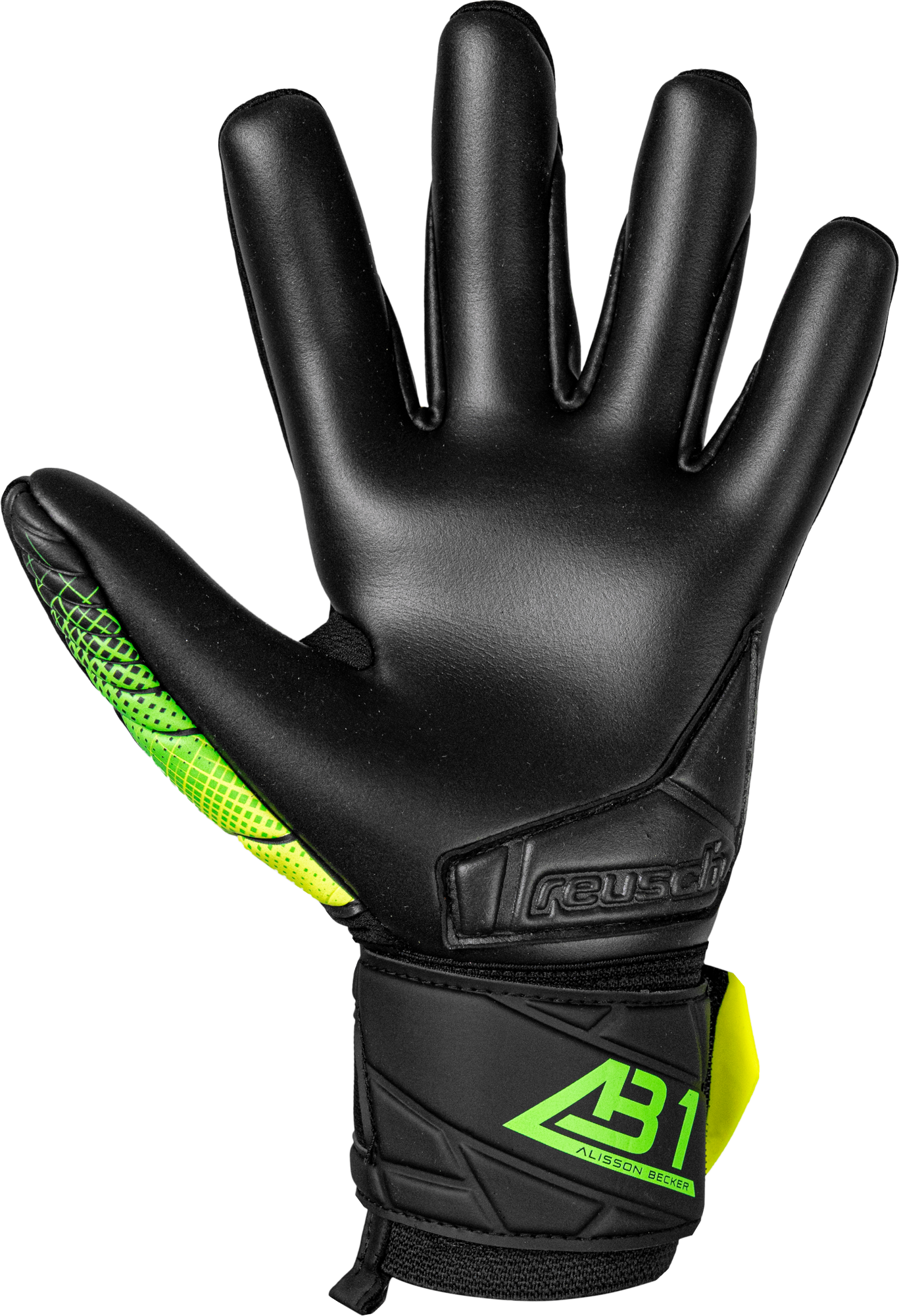 The Reusch Attrakt AB1 Infinity Goalkeeper Glove offers increased levels of durability, making it a great option for keepers playing and training on turf soccer fields. This glove is designed to still offer grip on the ball with it's soft latex. The backhand features the Brazil flag color way as a nod to pro goalkeeper Alisson Becker.