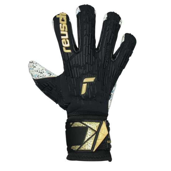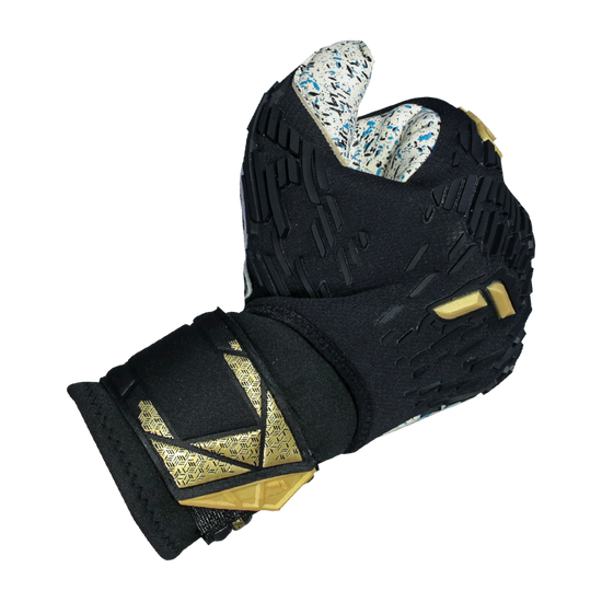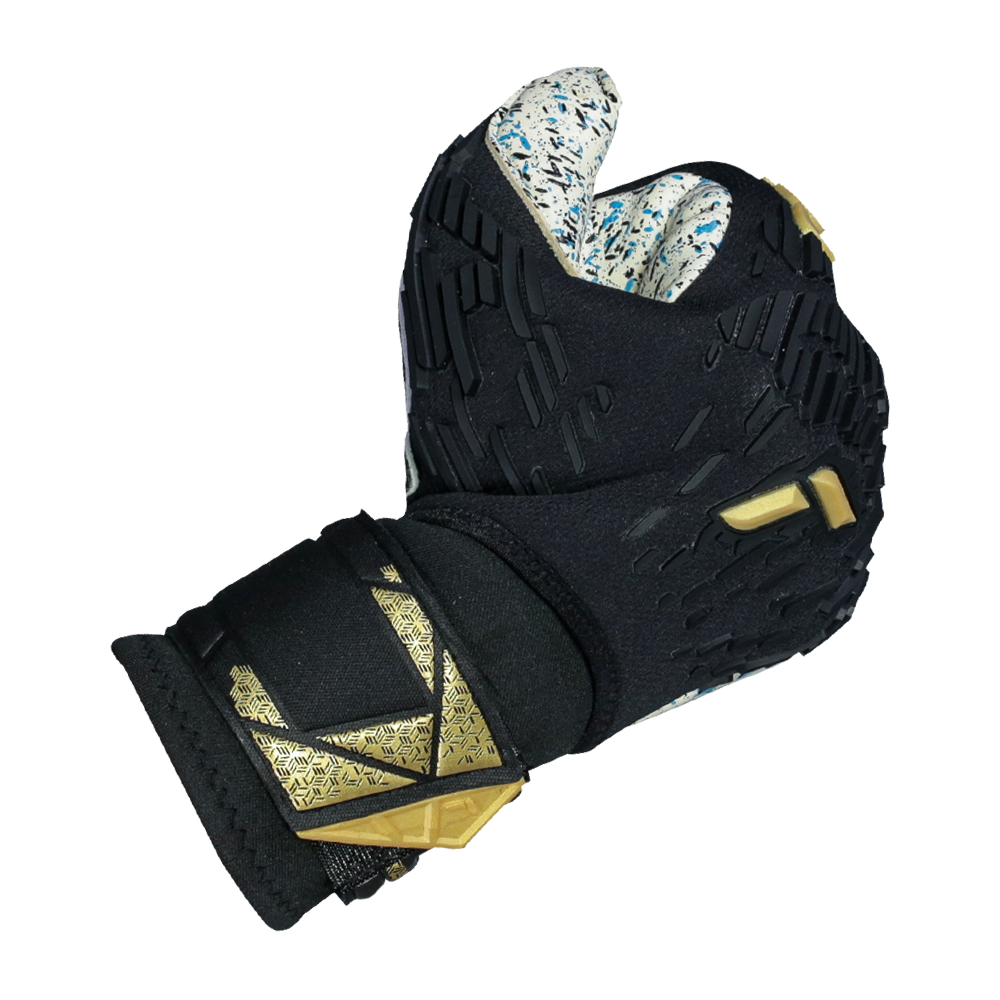 Beautiful Black and Gold color scheme on the stretchable mesh neoprene body material for excellent comfort and flexibility. The material is highly breathable thanks to the Airvent system that Reusch incorporate. This system allows air to freely move through the base material to keep your hands more comfortable. In place of their Shock Shield punch zone, Reusch have introduced the new redesigned Freegel silicone application on the backhand with hundreds of separate small rubber elements providing high flexibility and lightness and at the same time the needed support and stability for catching and punching.