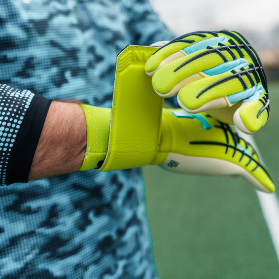 Hybrid Flat Cut - The combination of Rolled Fingers and Flat Cut ensures an extremely comfortable fit and more contact surface on the ball.Closure