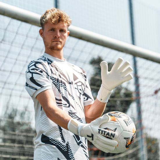The T1TAN Legend 1.0 White-Out is a top-tier goalkeeper glove engineered for performance, comfort and reliability. Ideal for match day on grass or turf surfaces or intense training sessions!