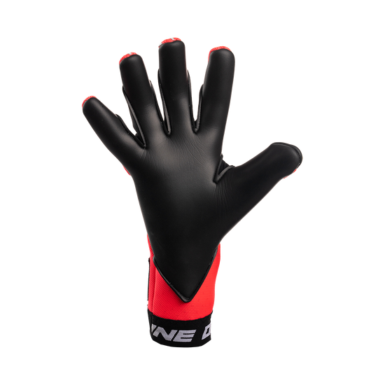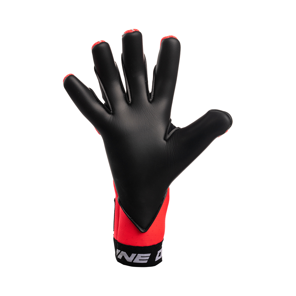 Black Pro Grade Contact latex, used by all One Glove pros right up to the English Premier League. It is an excellent latex in the dry and will also perform very well in wet conditions. If it can beat the English weather, you know it's good! The glove also features a new internal grip system. Echo Form 2.0 is not like other internal grip systems. Inside the tips, thumb and palm are carefully placed "echos" - individually shaped patterns engineered to combat the direction your fingers, thumb and palm naturally slip against when making contact with the ball. Each one is different. Thanks to its clever pattern design, no more silicone is used than required, meaning the feeling doesn't overbear. A subtle but reliable feature giving you that extra edge and confidence. New V-Palm for extended cut and comfort.Finger Protection