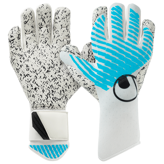 The Uhlsport Cybertec Supergrip+ HN Goalkeeper Gloves offer supreme tacky grip on the soccer ball and good durability at the game level. The half negative cut and double wrap closure ensures a snug fit on the hand.