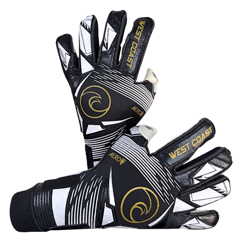 No finger spines in the Aero range of glove from West Coast Goalkeeping.