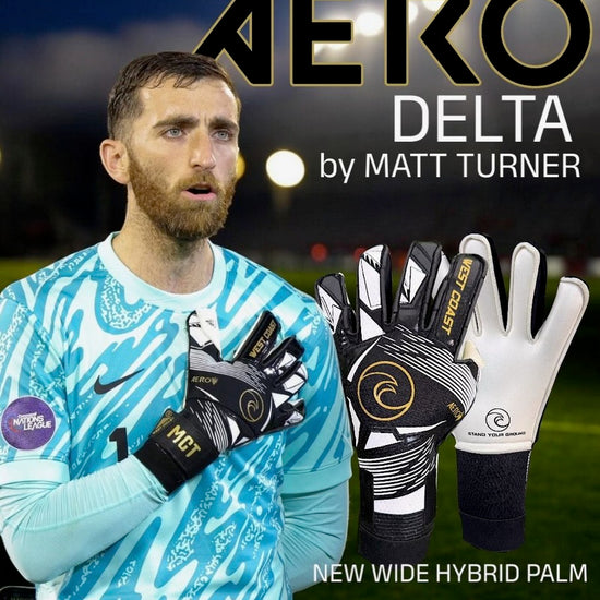 The AERO Delta, the next glove in the new super lightweight AERO family of gloves. Designed and worn by USMNT and Premier League keeper Matt Turner, the AERO Delta features an all new negative wide hybrid palm cut. The Aero Series is the lightest glove series to date and features the exclusive Hex-Pro backhand, along with an optional wrist strap, and is paired with our top Monster Grip latex!